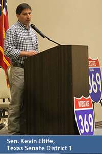 Senator Eltife said that Texas has failed to adequately fund highways and that TxDOT faces a funding crisis in 2015 when the agency will no longer have funding to continue planning new projects.