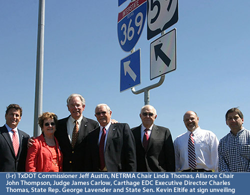 Judge Carlow recognized the lasting contributions of Charles Thomas, president of the Carthage Economic Development Corporation. He recalled that it was Thomas who 20 years ago pulled together leaders in Northeast Texas to deliver the message that if they did not get organized that I-69 was going to exit Texas at Teneha in Shelby County. That would mean that the five counties along US 59 from Texarkana to south of Carthage would be left out. “Thanks to that effort we are here today to add our first piece to the I-69 system,” Carlow said.