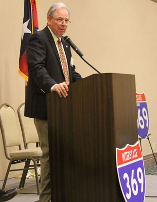 He urges highway advocates to keep pushing forward on projects along the route in Texas, connecting the sections like I-369 that are now complete. He said connectivity is important for the state’s major seaports, for the border ports of entry and for inland transportation hubs such as the developing TexAmericas complex west of Texarkana.